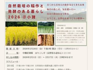 中棚荘別邸 はりこし亭様よりご案内です。 『自然栽培の稲作と発酵のある暮らし2026@小諸』 古くから日本人の食を支えてきたお米。 毎日の食こそ、気を遣いたい。 自分の食は自分で作る。 […]