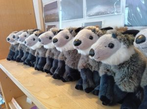 高峰高原ビジターセンター売店で大好評販売中の、カモシカぬいぐるみ。登山記念バッジも販売しております。