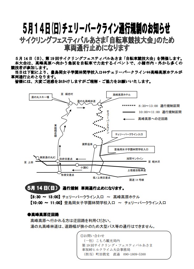 当大会に伴い、チェリーパークラインに交通規制が敷かれます。