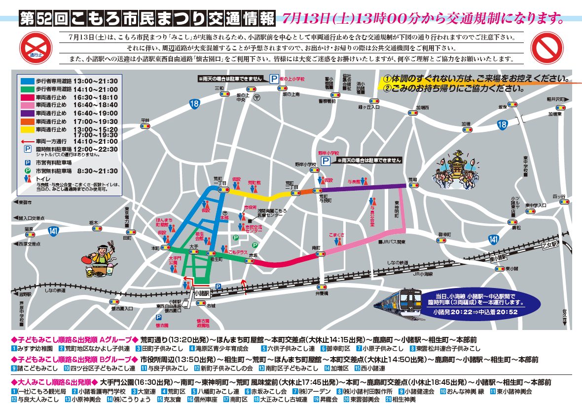 小諸駅前を中心に車両通行止めを含む交通規制が行われます。