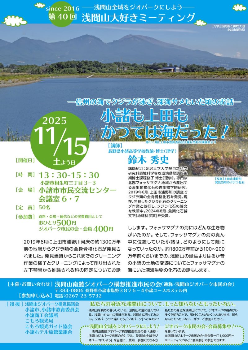 11/15(土)第40回浅間山大好きミーティング『小諸も上田もかつては海だった!』
