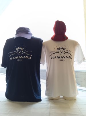 カモシカと浅間山が合体?!した、浅間山の山Tシャツです。高峰高原ビジターセンター売店でしか手に入らない、オリジナルデザイン。日本有数のカモシカ生息密度を誇る浅間山を訪れた記念に♪