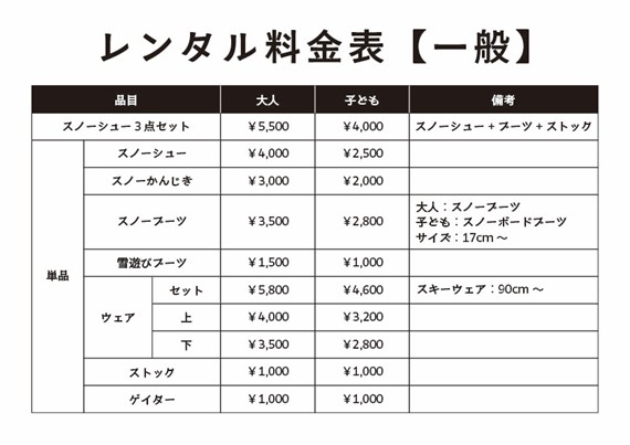 スノーシューやスノーブーツ、ウェアなどのレンタルを行っております。