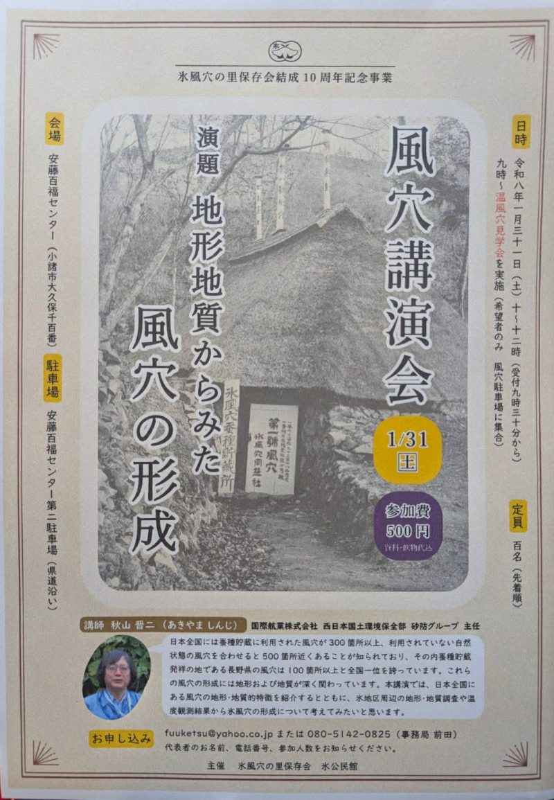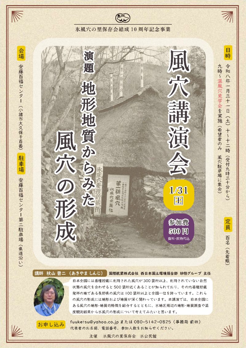 1/31(土)風穴講演会『地形地質からみた風穴の形成』開催のご案内
