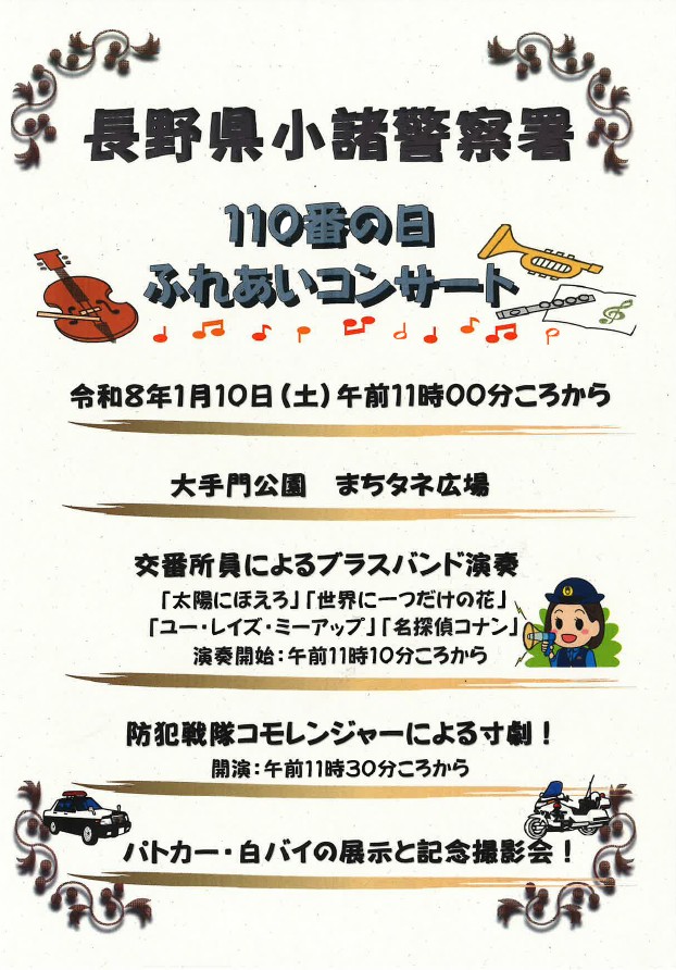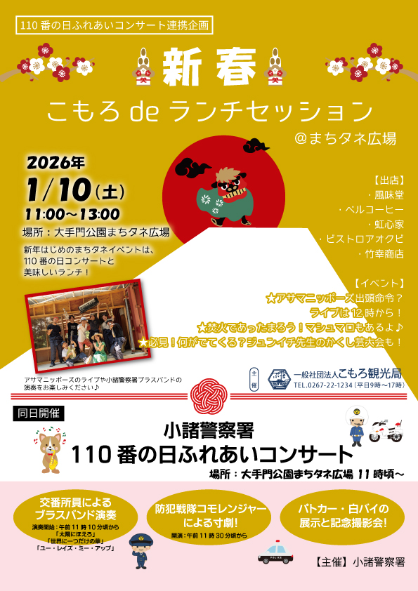 1/10(土)新春!こもろdeランチセッション@まちタネ広場/【同日開催】小諸警察署110番の日ふれあいコンサート開催!
