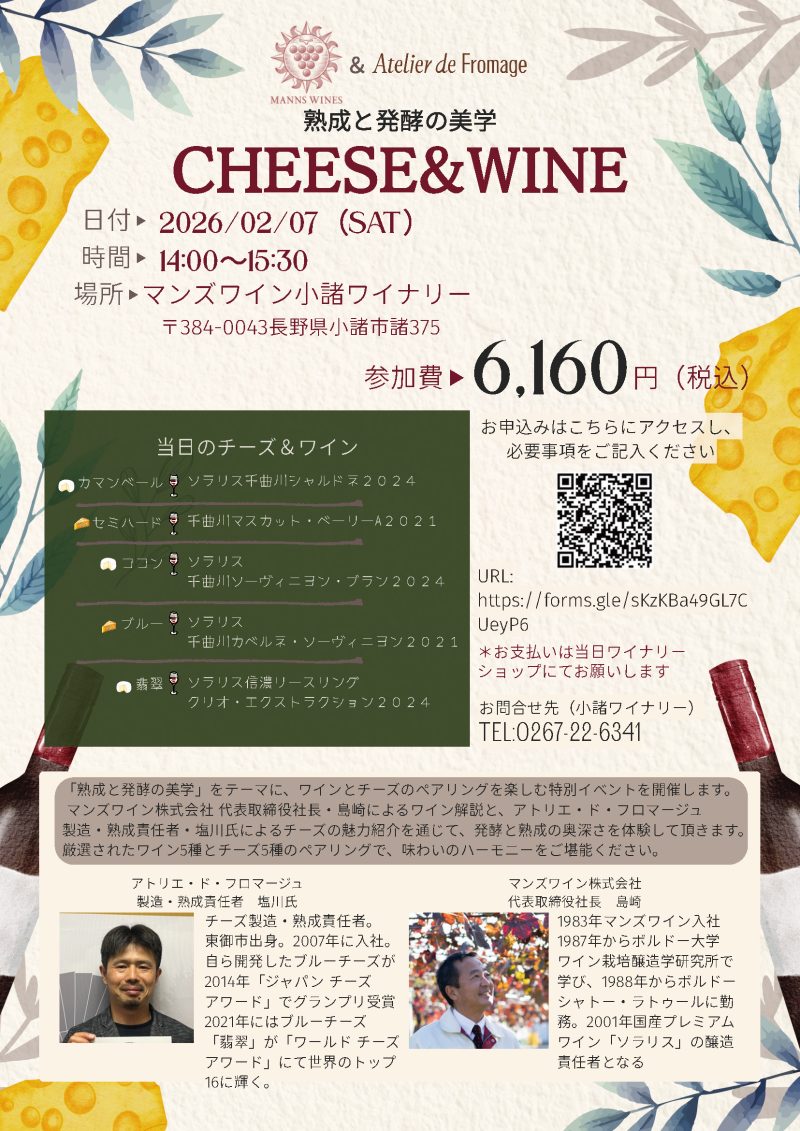 2/7開催「チーズとワイン、熟成と発酵の美学」【マンズワイン小諸ワイナリー】