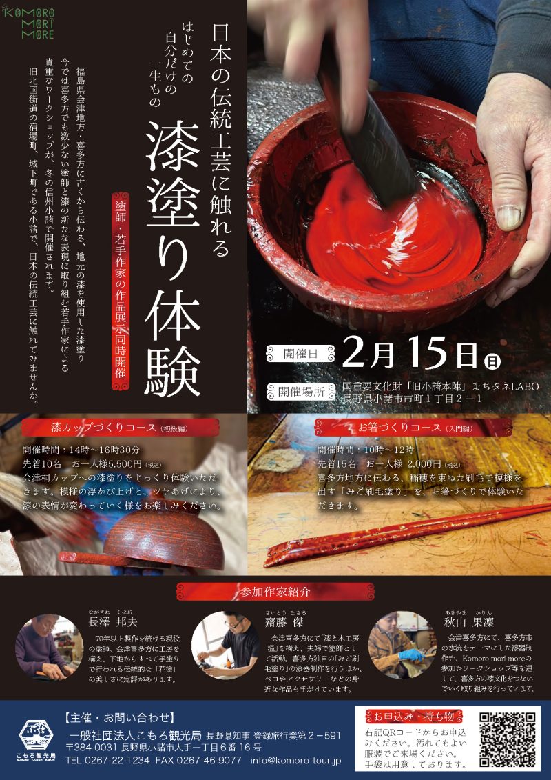 福島県会津地方・喜多方に古くから伝わる、地元の漆を使用した漆塗りのワークショップです。