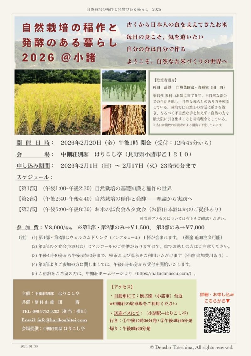 『自然栽培の稲作と発酵のある暮らし2026@小諸』