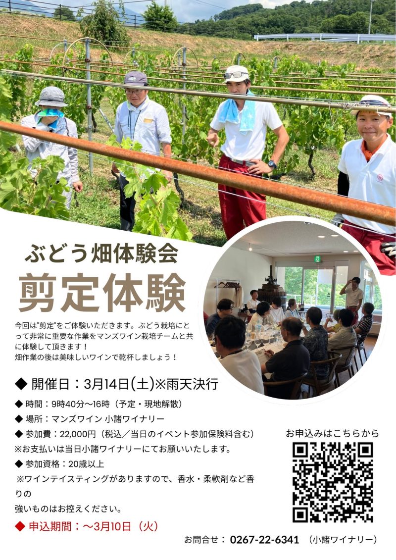 3/14(土)マンズワイン小諸ワイナリーぶどう畑体験会『剪定体験』のご案内