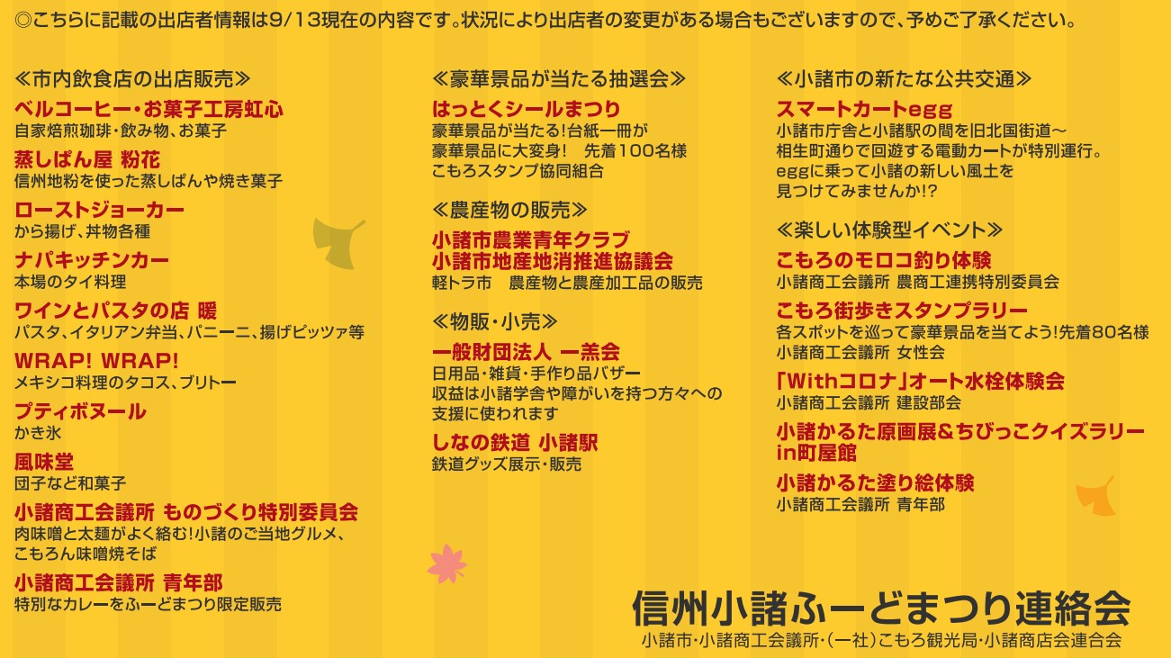 【主催】信州小諸ふーどまつり連絡会(小諸市、小諸商工会議所、(一社)こもろ観光局、小諸商店会連合会)