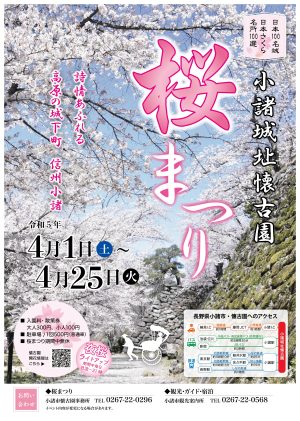 小諸城址懐古園桜まつり中の懐古園内イベント情報は別ページで確認できます。 「小諸城址懐古園桜まつりイベント情報ページ」 |侍フォトコンテスト 小諸城 春の陣 開催期間:2024年4月6日(土) 時間: […]