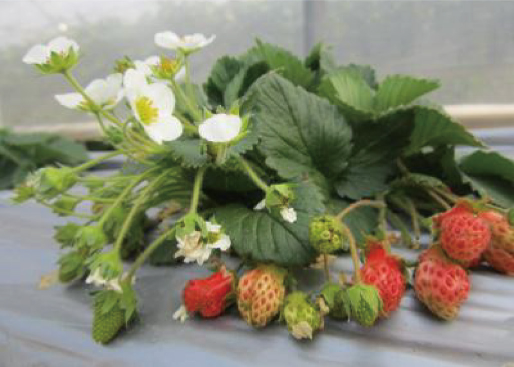 小諸市の南側、千曲川より左岸に広がる台地の上、「御牧ヶ原」には、「いちご平」の地名が残ります。「いちご平」には昔から野生のいちごがあったそうで、その起源は平安時代からという説もあるようです。 御牧ケ原一帯で作られた「御牧いちご」と呼ばれる品種は、室町時代から栽培が続けられていたと言われています。冷涼で日照時間も長く降水量の少ない小諸の気候はいちご栽培に適した風土であり、「御牧いちご」の栽培は大正から昭和にかけて最も盛んになりました。 昭和11年に長野県立農事試験場が、新品種育成のための品種の選抜を行いました。御牧ケ原地区の中から2系統を選び、他品種と比較したところ、この2系統に勝る品種はなく、それぞれ「御牧ケ原一号」「御牧ケ原二号」と命名され、栽培が広がっていきました。この2つは、現在流通しているイチゴの原種だと言われています。 昭和30年代、高度成長期に入ると「御牧いちご」も姿を消していきました。しかし、近年この消えたと思われた「御牧いちご」は、長い年月をかけて見つけ出され小諸に戻り、現在「布引いちご園」で栽培保存されています。