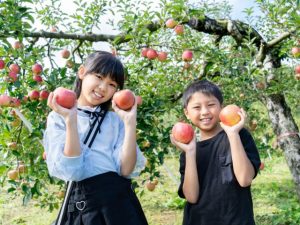 浅間山の麓、標高700m~1,000mに広がる果樹園。日照時間が長く降水量も少ない、カラリと湿度の低い高原の気候がおいしい「くだもの」を育みます。昼夜の寒暖差が大きいこともあり、糖度が高く、香りの良い「くだもの」の産地です。