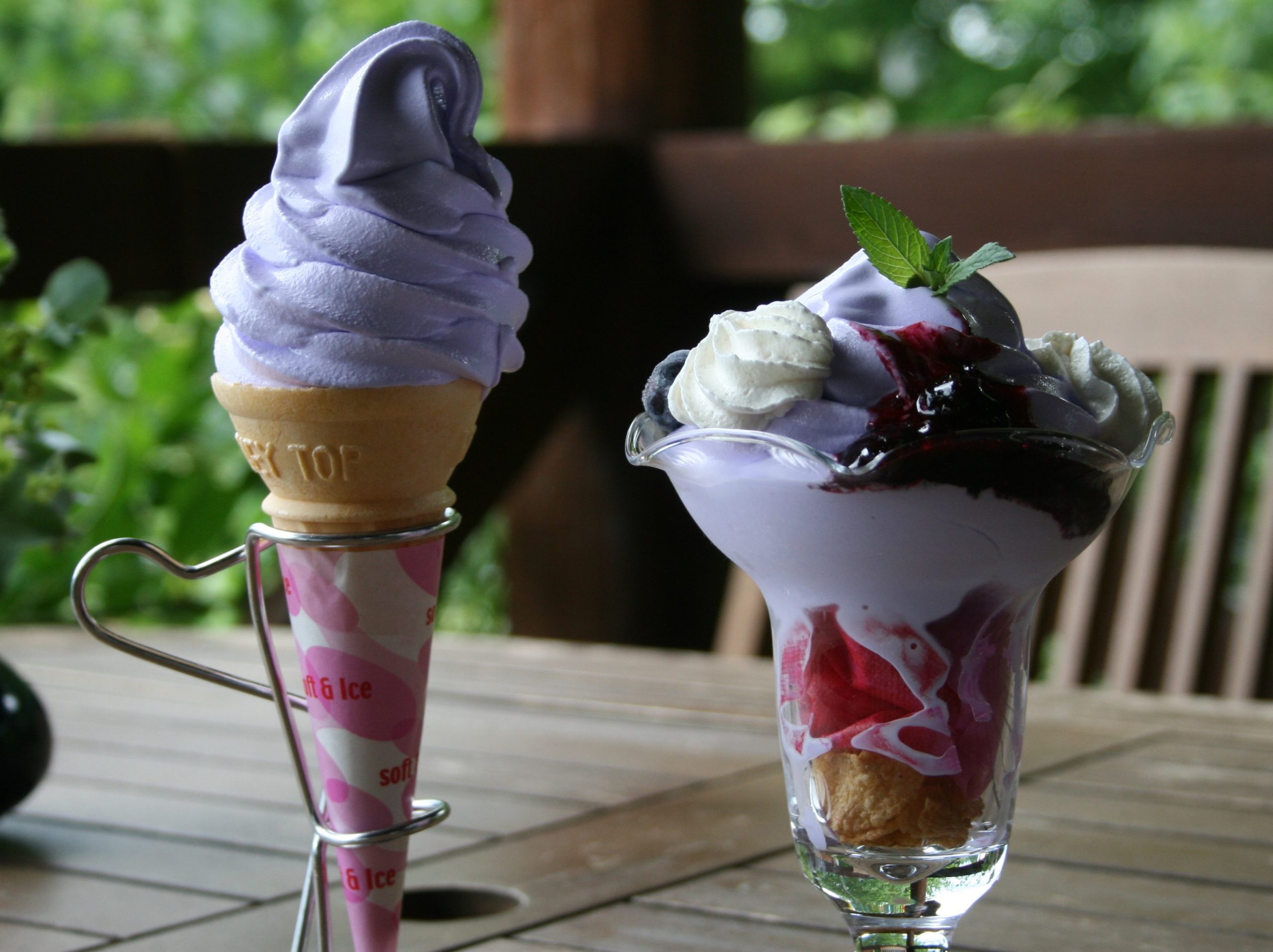 ショップではドライフラワーやフローラルウォーター、オリジナル雑貨、農場産オーガニックハーブティー等が並び、カフェでは農場産ハーブを使ったハーブティーやスイーツ、オリジナルドリンクやラベンダーソフト等をどうぞ!
