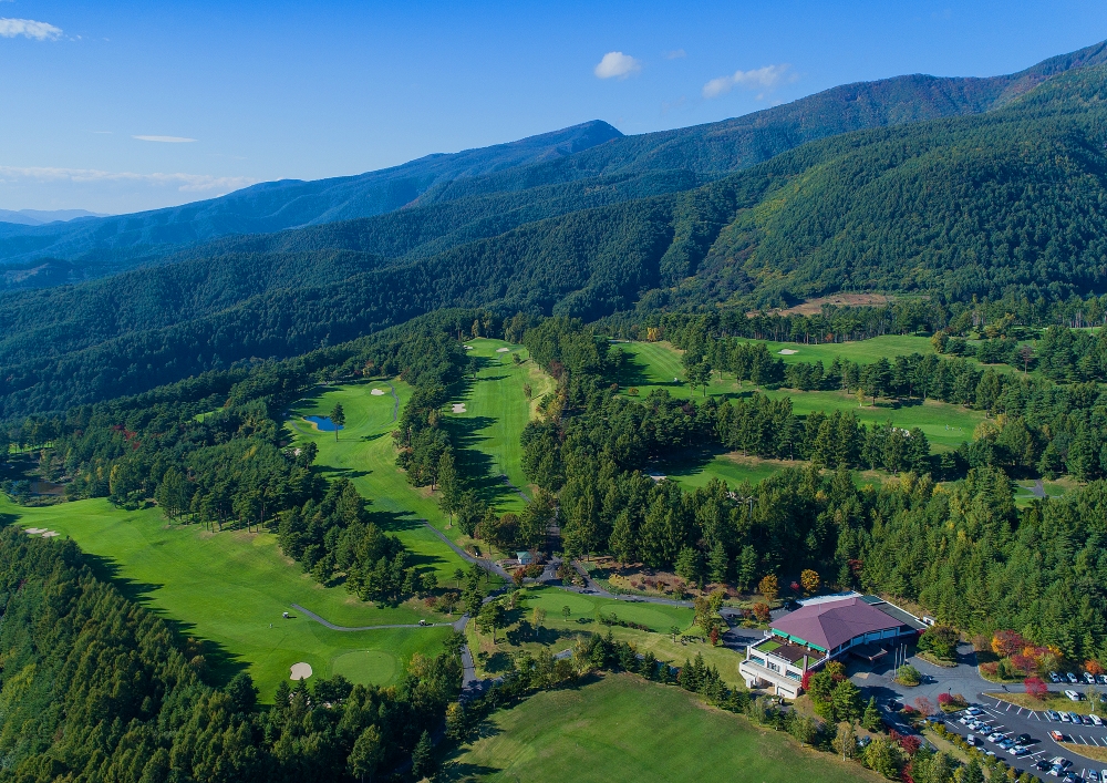 標高1,000m、高い晴天率、北アルプス、八ヶ岳、富士山をはじめとしたパノラマとカラマツやシラカバ、モミの木などの木々や花々に抱かれ高原のゴルフをお楽しみください。