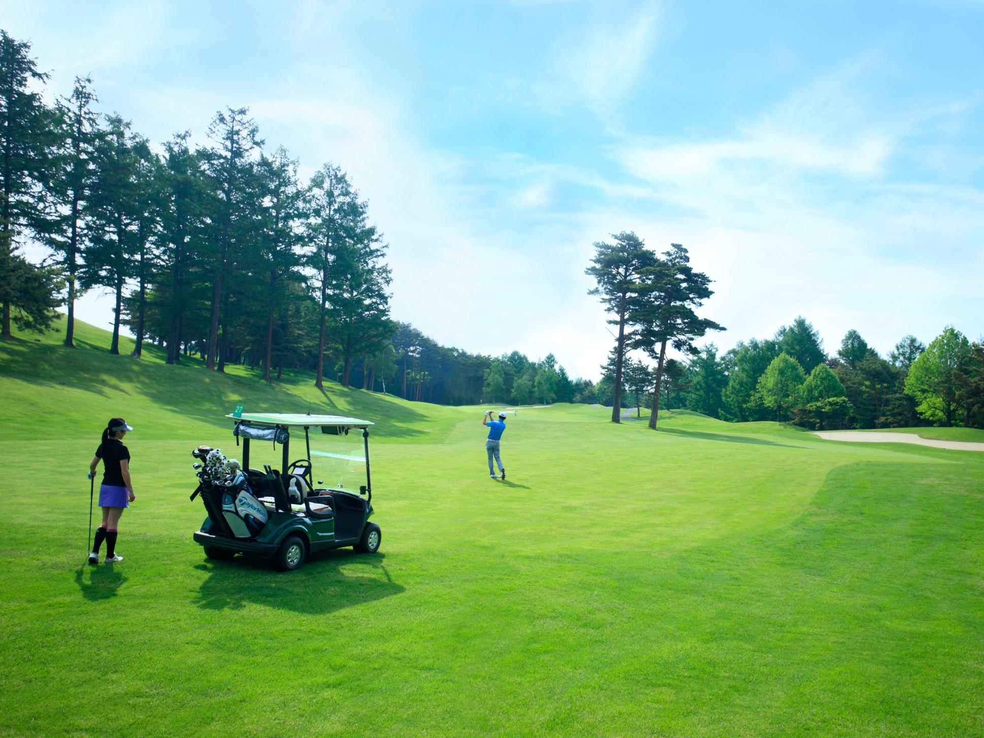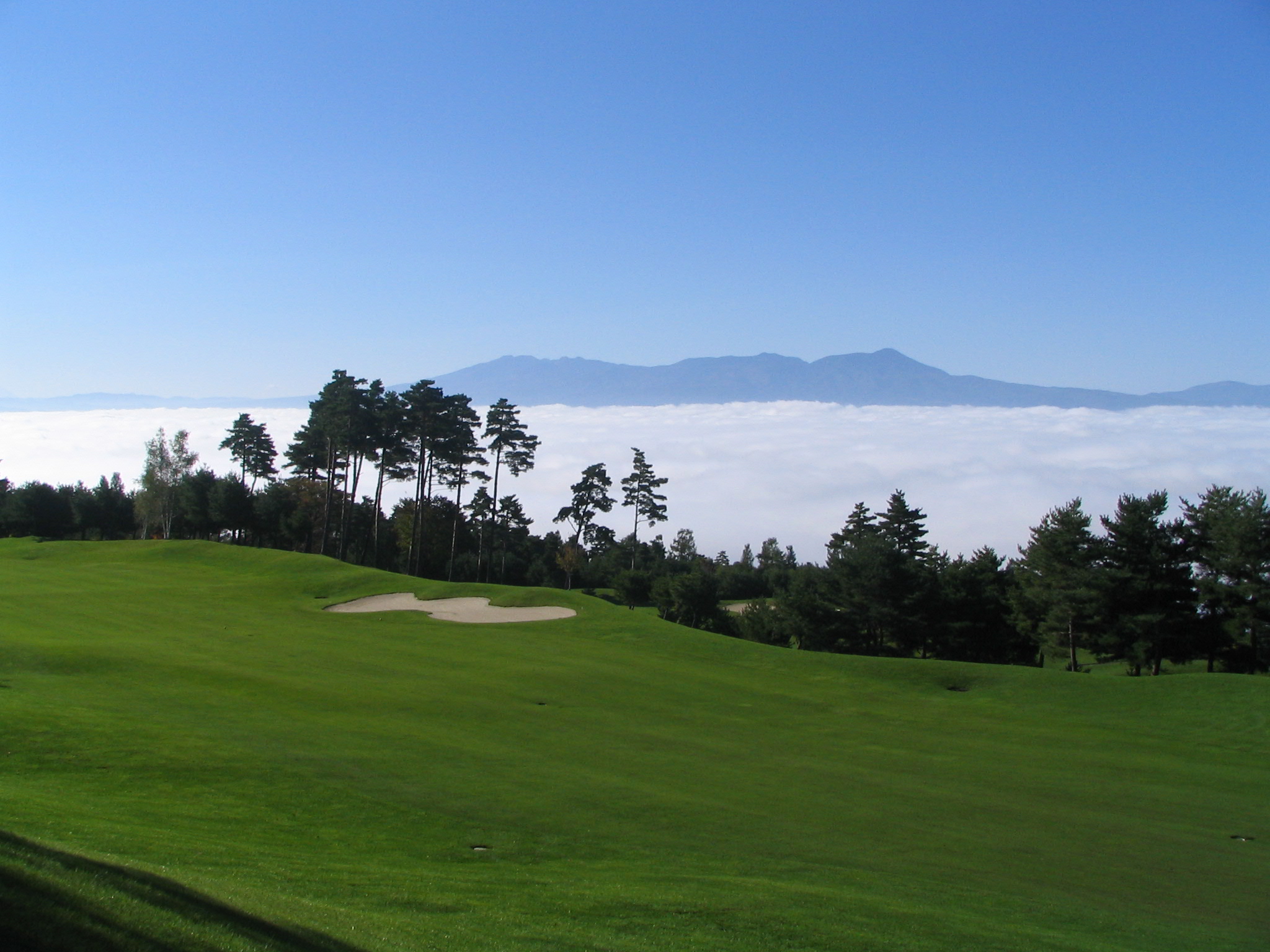 標高1,000m、高い晴天率、北アルプス、八ヶ岳、富士山をはじめとしたパノラマとカラマツやシラカバ、モミの木などの木々や花々に抱かれ高原のゴルフをお楽しみください。